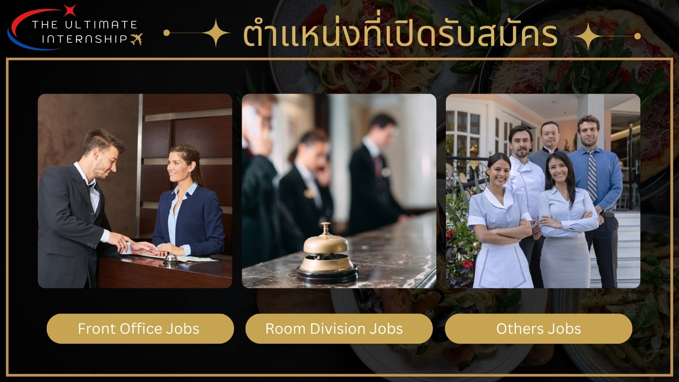 ดำเนินงานโดยบริษัท The Ultimate Internship โดยมีทีมงานที่เชี่ยวชาญด้านโครงการแลกเปลี่ยนภาษา และวัฒนธรรมในสหรัฐอเมริกา ทางบริษัทฯ ได้ร่วมมือกับทาง US Sponsor โดยตรง โดยมีสายงานทั้งในสาขา Hospitality และ Culinary ซึ่งทาง Ultimate มีจุดมุ่งหมายในการส่งเสริมผู้เข้าร่วมโครงการฯ ได้มีประสบการณ์ทำงานในสภาพแวดล้อมการทำงานจริง ได้เรียนรู้และเข้าใจวัฒนธรรมที่หลากหลาย รวมถึงได้เพิ่มโอกาสในการหางาน และเสริมสร้างความก้าวหน้าในสายอาชีพของตนเองทีมงานให้ความสำคัญกับการจัดการโครงการอย่างมีประสิทธิภาพ เพื่อให้ทุกประสบการณ์ของคุณสมบูรณ์แบบและน่าจดจำ